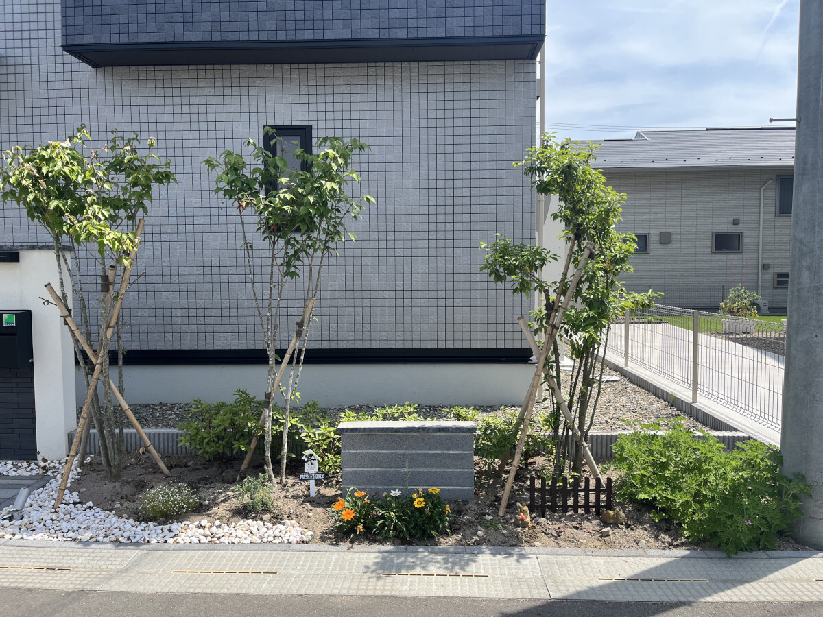 植栽スペースは少な目ですが、その分お手入れする箇所も少ないので、