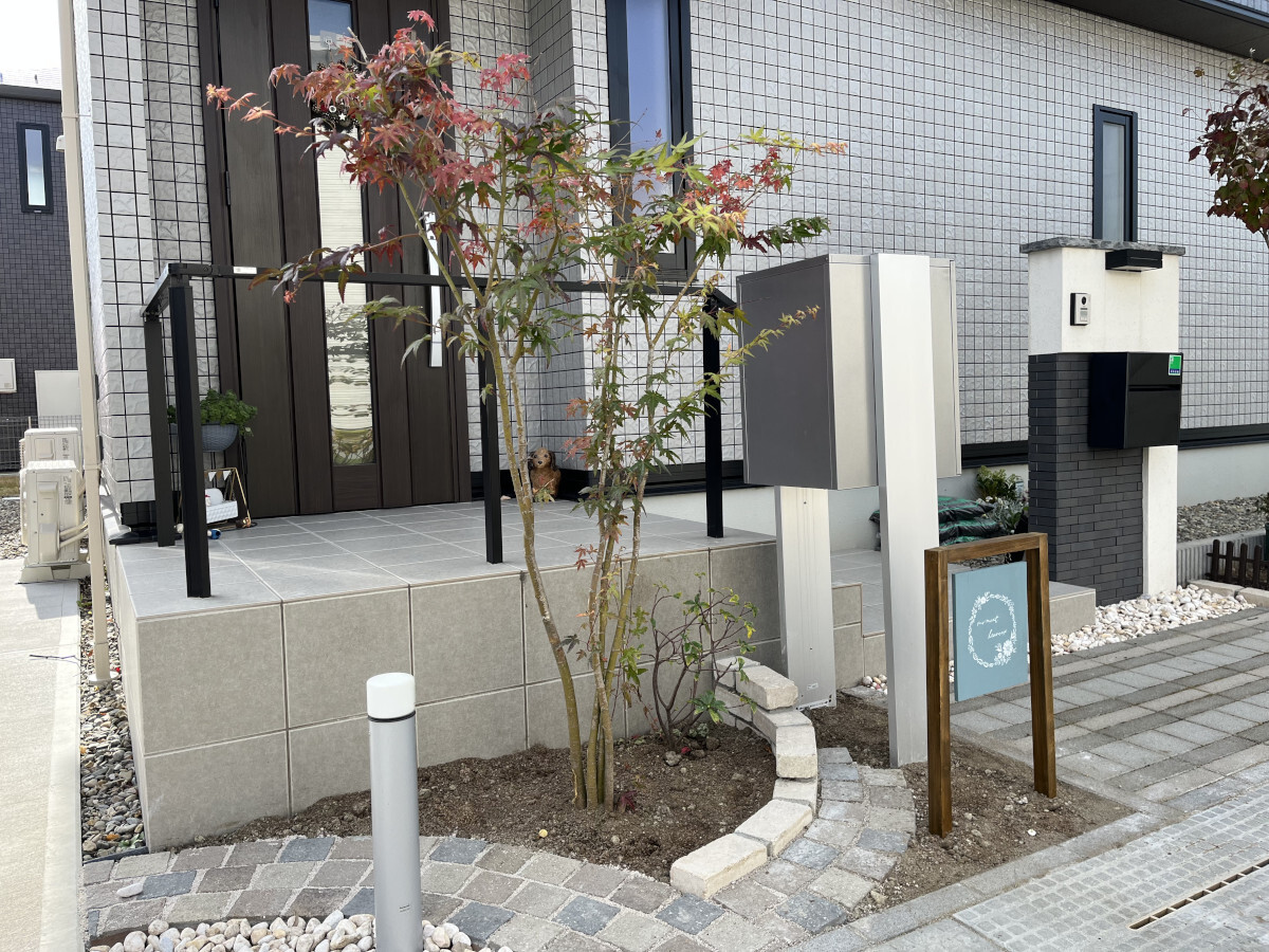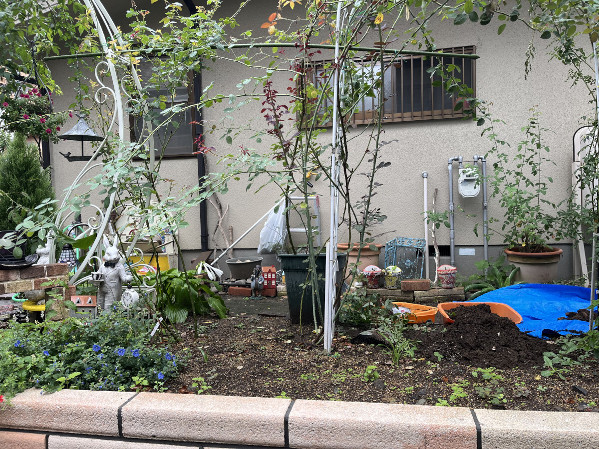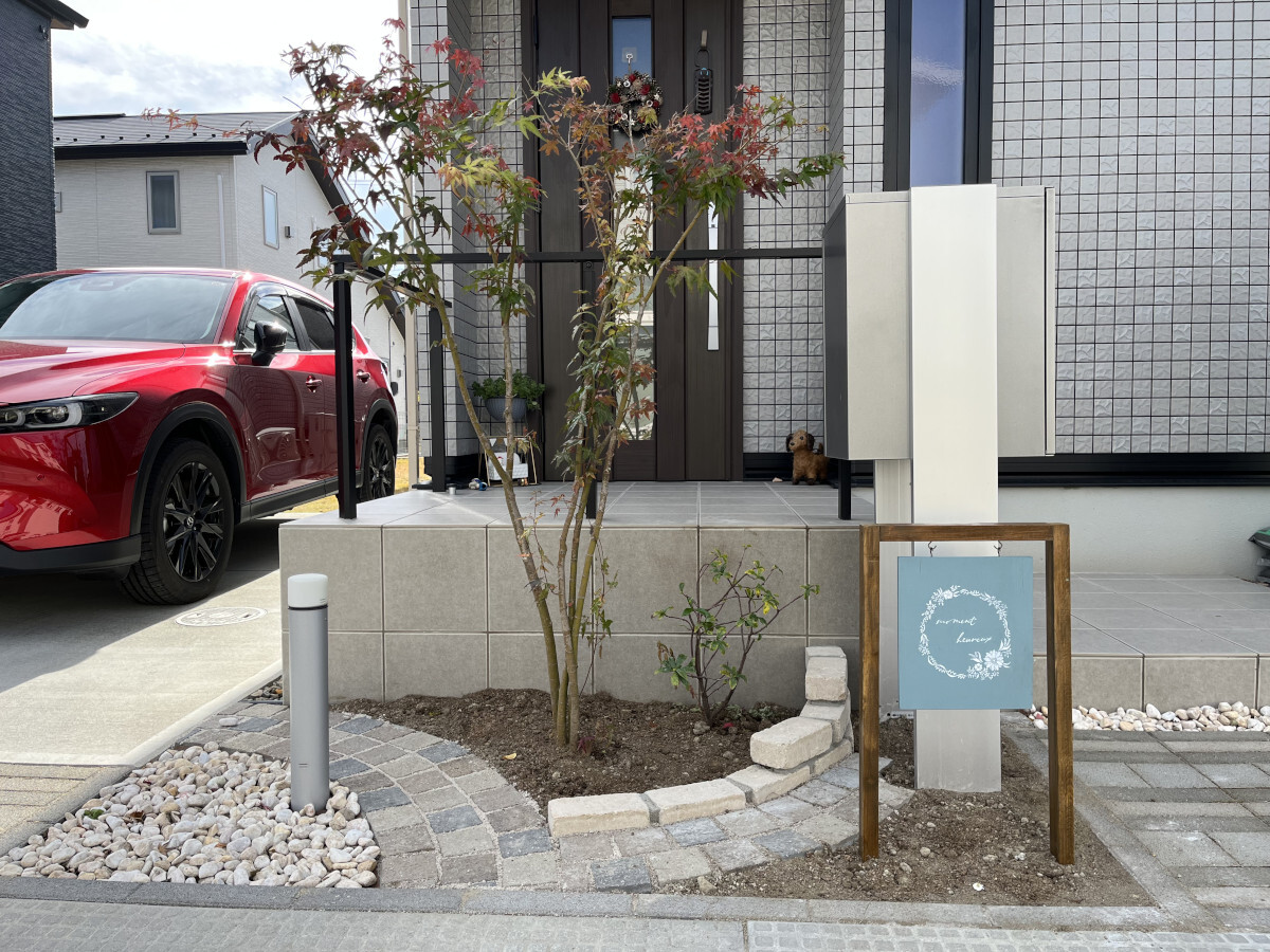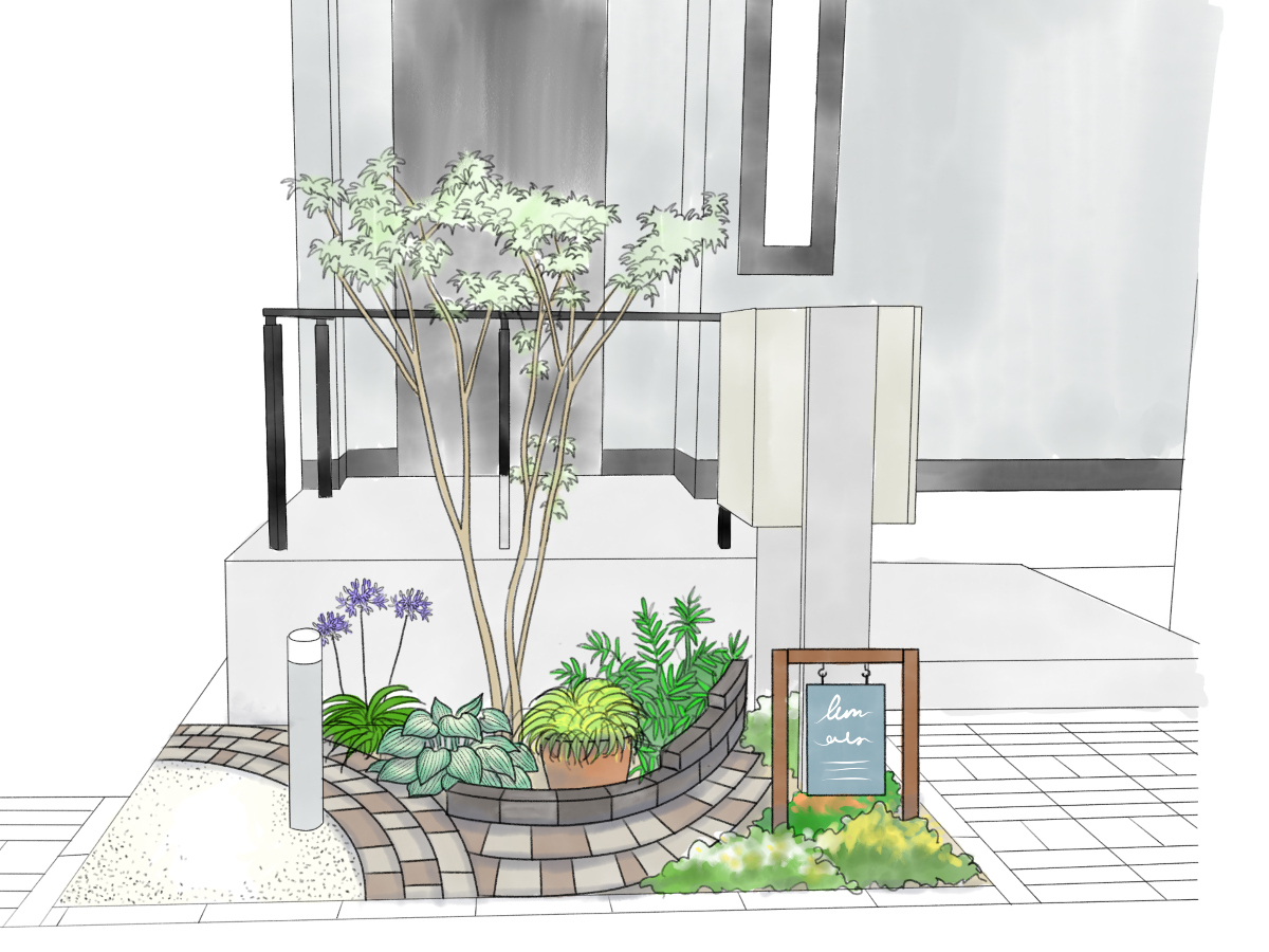 鉢植えで管理していたけれど、地植えで植物を育てたいというご要望でした。また、お家でネイルのお仕事をされているため、お客様をおもてなしする空間としても大事なスペースでした。