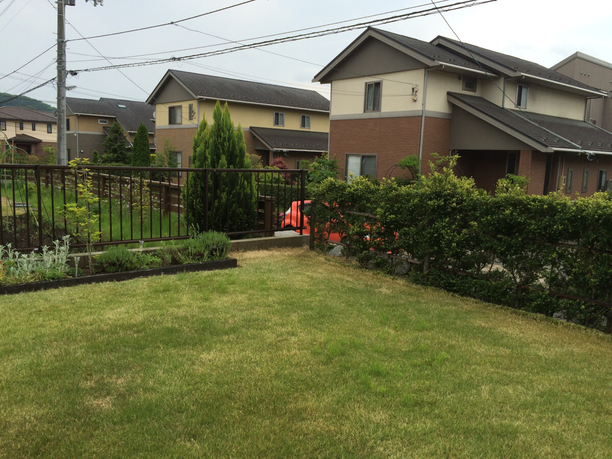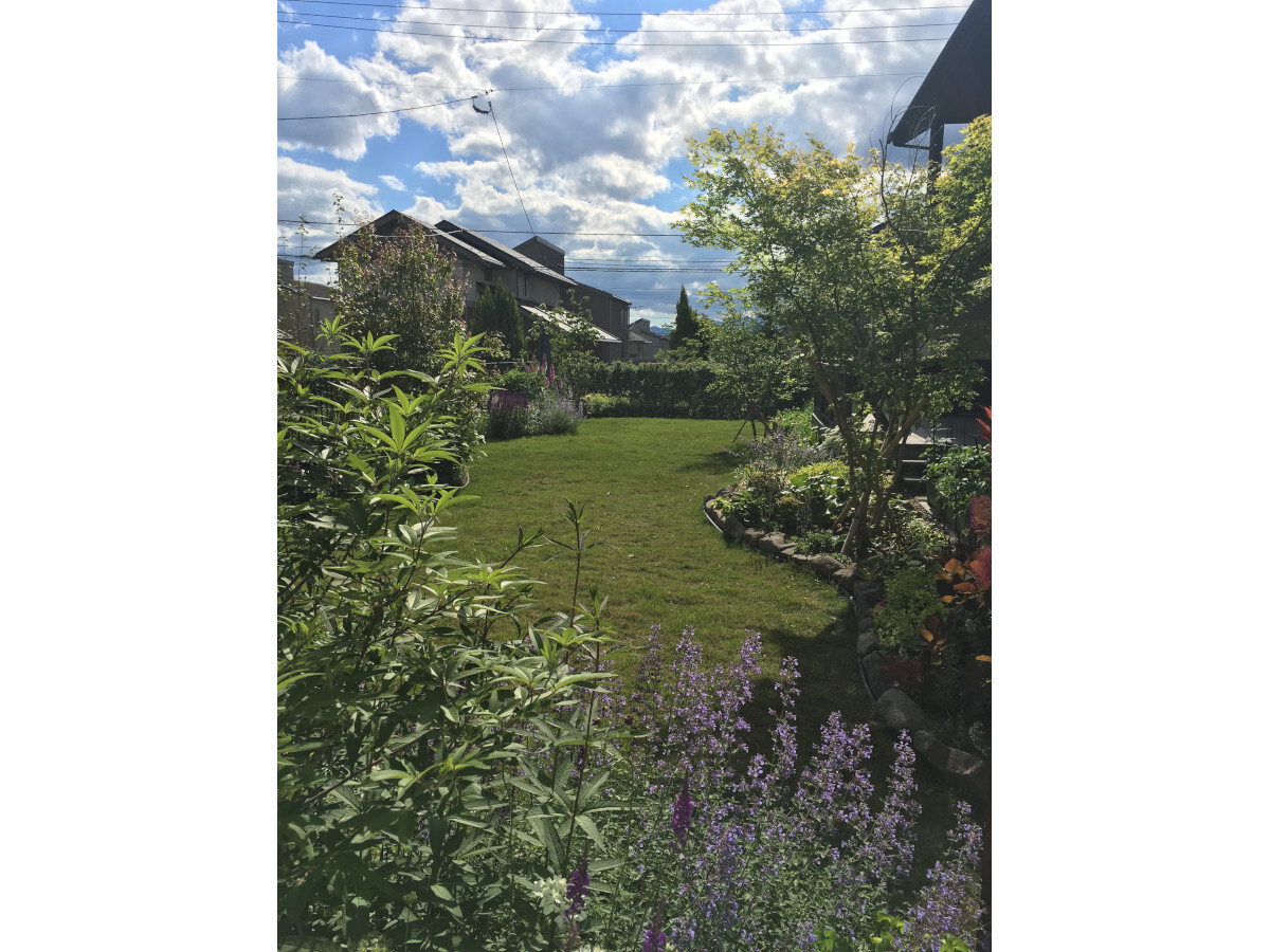 初めて伺った時に目に入ったのは、きれいに刈り込まれた青い芝生でした。削ってしまうのがもったいないほどのきれいな芝生でしたが、ガーデンへと変身させることになりました。